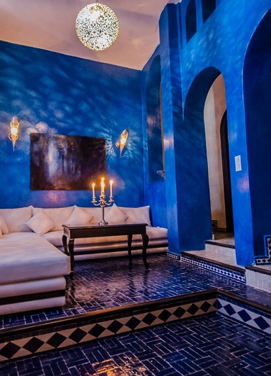 A polished, contemporary riad in the heart of the blue city. Warm interiors, strong light, and a spa that gives the body a rare pause. It blends modern comfort with the town’s signature palette.