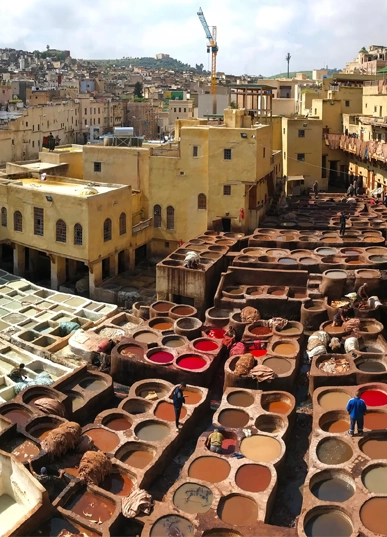 The largest and oldest tannery in Fes, where leather is still dyed using centuries-old techniques.