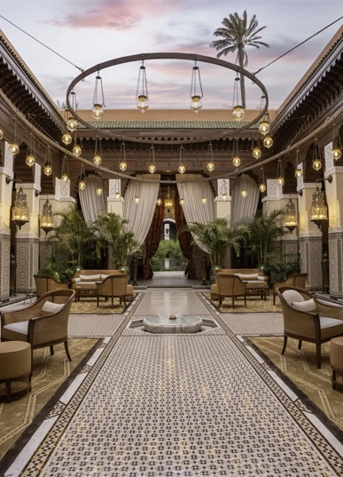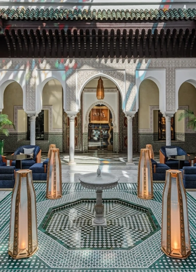 Marrakech’s grand stage. Decadent, cinematic, unapologetically opulent. Moorish tiles, deep colors, and gardens older than most nations.